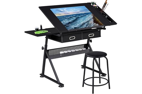 Web This drafting table comes with a steel stool that has a cushioned seat for added comfort while you work.